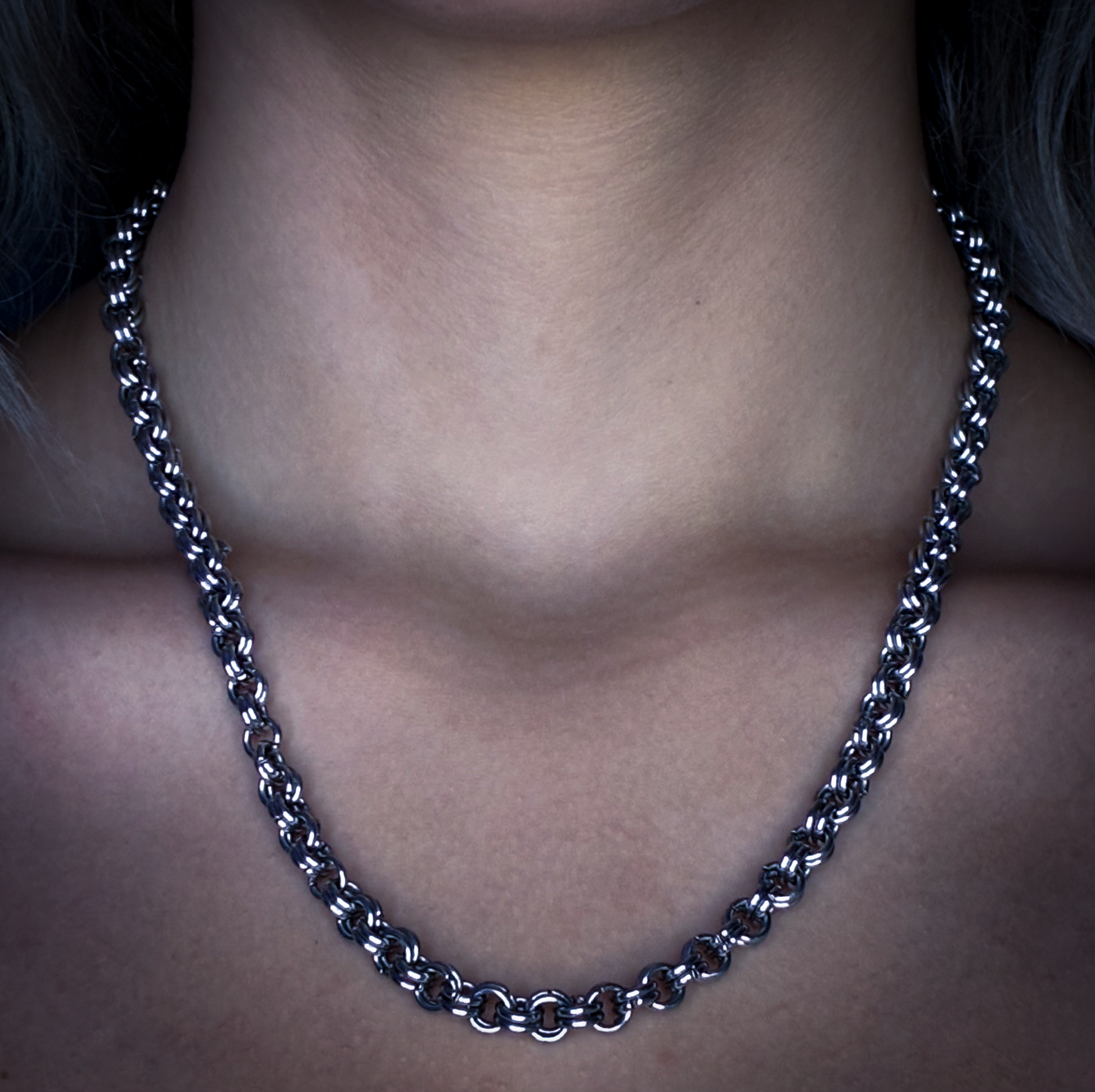 Discover the Etherna Chain, a hand crafted dual loop ring that embodies ethereal grace and wearable comfort. The interconnected chain design creates an enchanting visual flow, while its thoughtful construction ensures all-day ease.