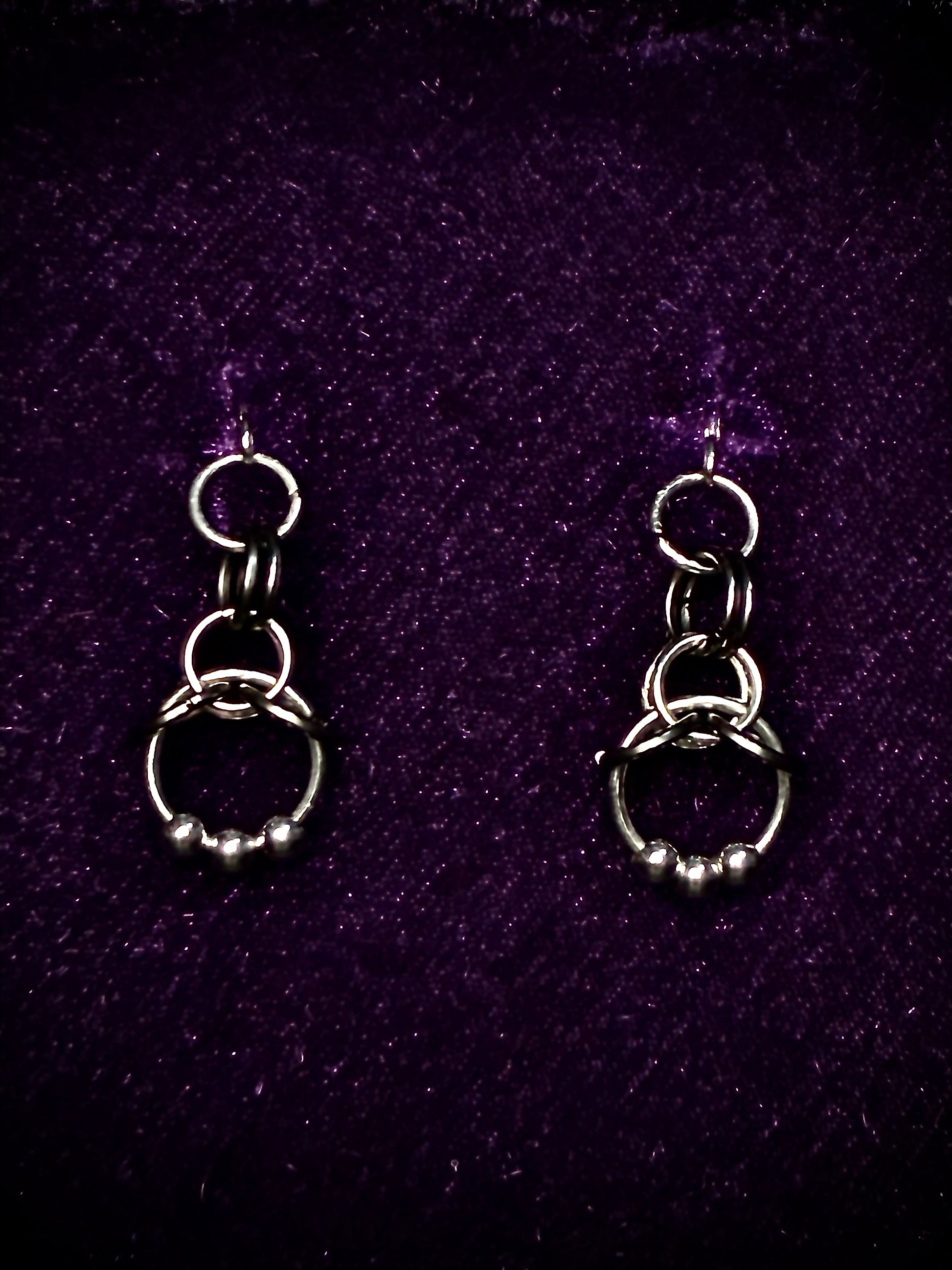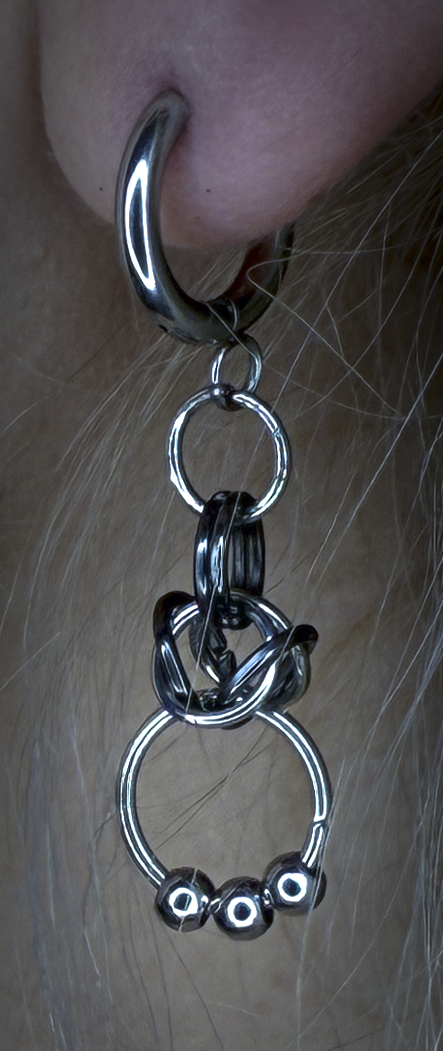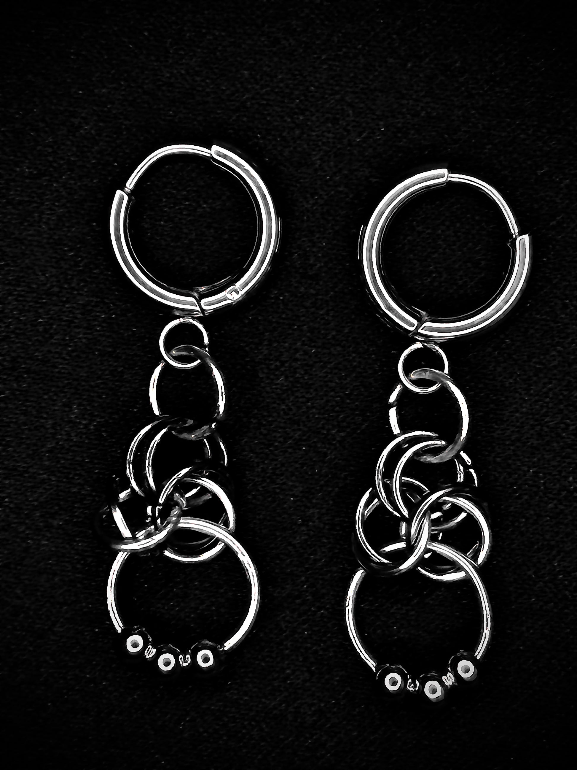 Halo captures movement through minimalist design. Chrome beads catch light as they shift within the weave, creating subtle yet striking visual interest.